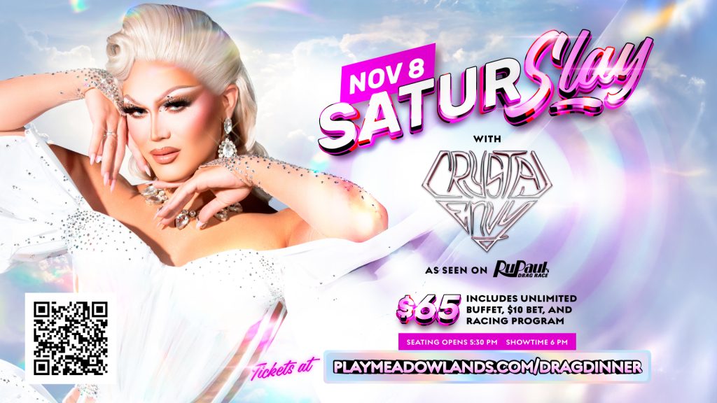 It is a SaturSLAY at the Meadowlands on Saturday, November 8 – a Dinner and Drag Show experience. Crystal Envy RuPaul’s Drag Race 2025 Miss Congeniality Winner hosts this night of fun with delicious buffet fare, specialty cocktails, fierce performances, and games. Tickets are just $65 and include dinner, a live racing program, a $10 voucher, and the show. Grab your tickets before they sell out – SaturSLAY at Meadowlands Racetrack in East Rutherford – Checkout.