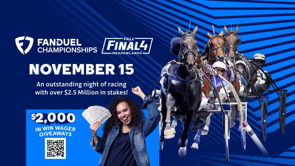 The FanDuel Championships and Fall Final Four round out the Meadowlands stake season on Saturday, November 15.  Fans can enter to win one of eight $500 win wagers by registering here.