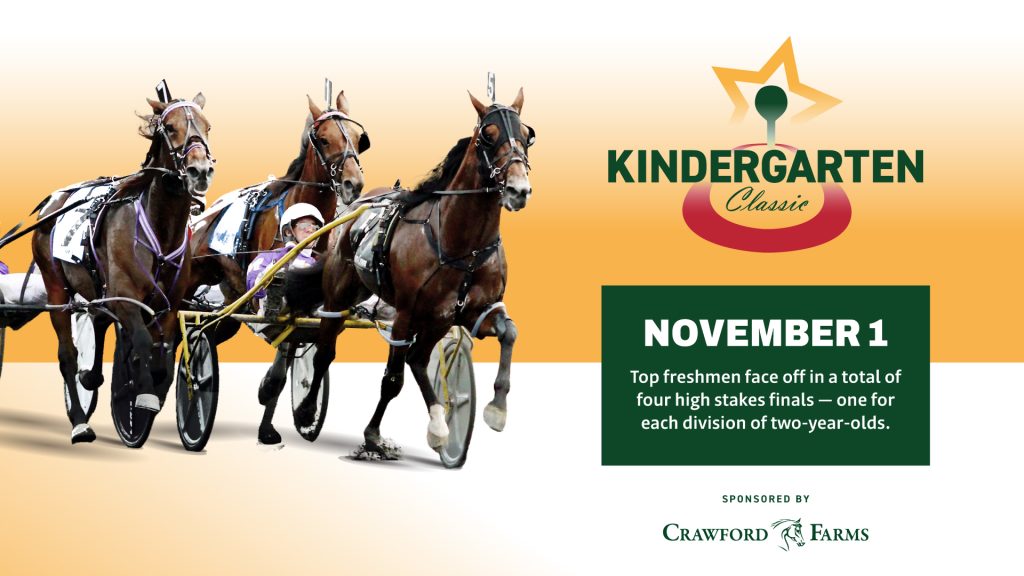 On Saturday, November 1, this year’s freshman trotters and pacers take center stage in the Kindergarten Finals sponsored by Crawford Farms.
